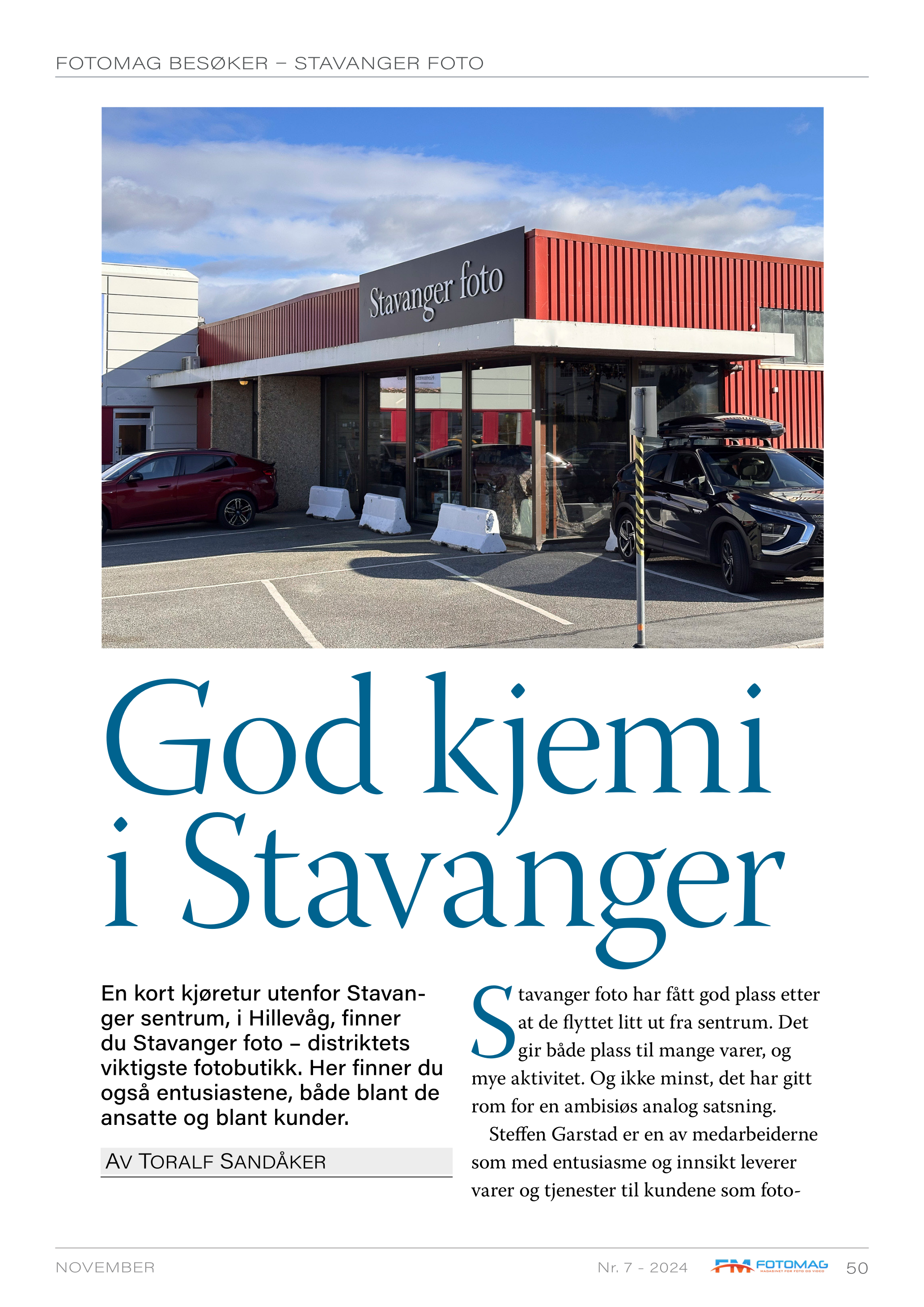 i Stavanger En kort kjøretur utenfor Stavanger sentrum, i Hillevåg, finner du Stavanger foto – distriktets viktigste fotobutikk. Her finner du også entusiastene, både blant de ansatte og blant kunder.