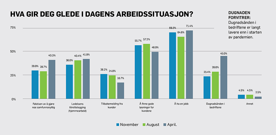 Dugnadsånden i bedriftene er kraftig redusert under pandemien.