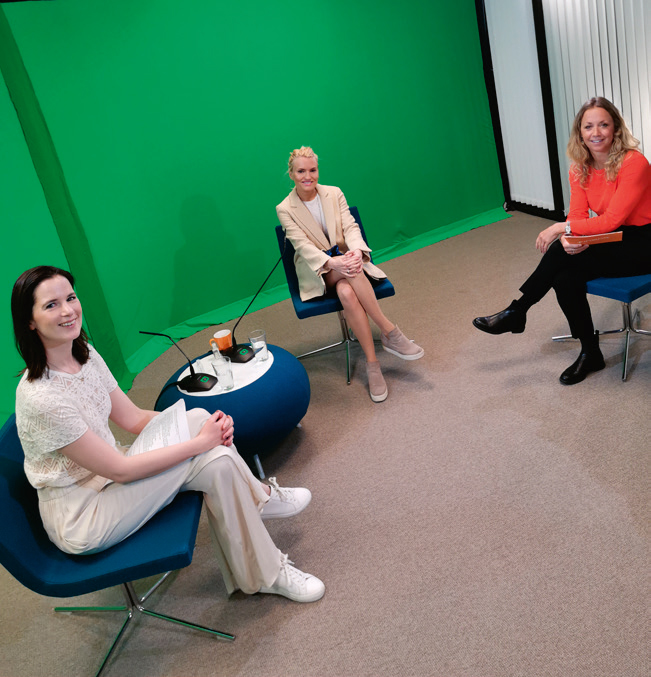 Bildet er tatt på et webinar i forbundet og viser fra venstre: Marie Louise Sunde og Isabelle Ringnes fra Equality Check og Nanna Ringstad, fagansvarlig bærekraft i Finansforbundet. (4. nov.)
