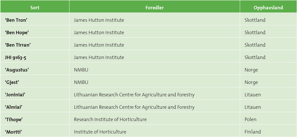 godt avlingspotensial. Sortene ‘Ben Tron’,