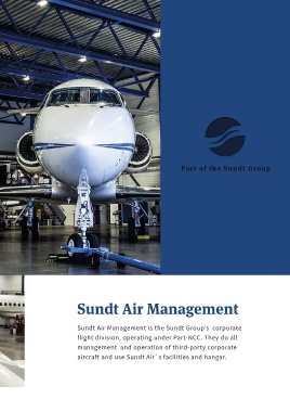 Sundt Air Management Sundt Air Management is the Sundt Group’s corporate flight division, operating under Part-NCC. They do all management and operation of third-party corporate aircraft and use Sundt Air`s facilities and hangar.