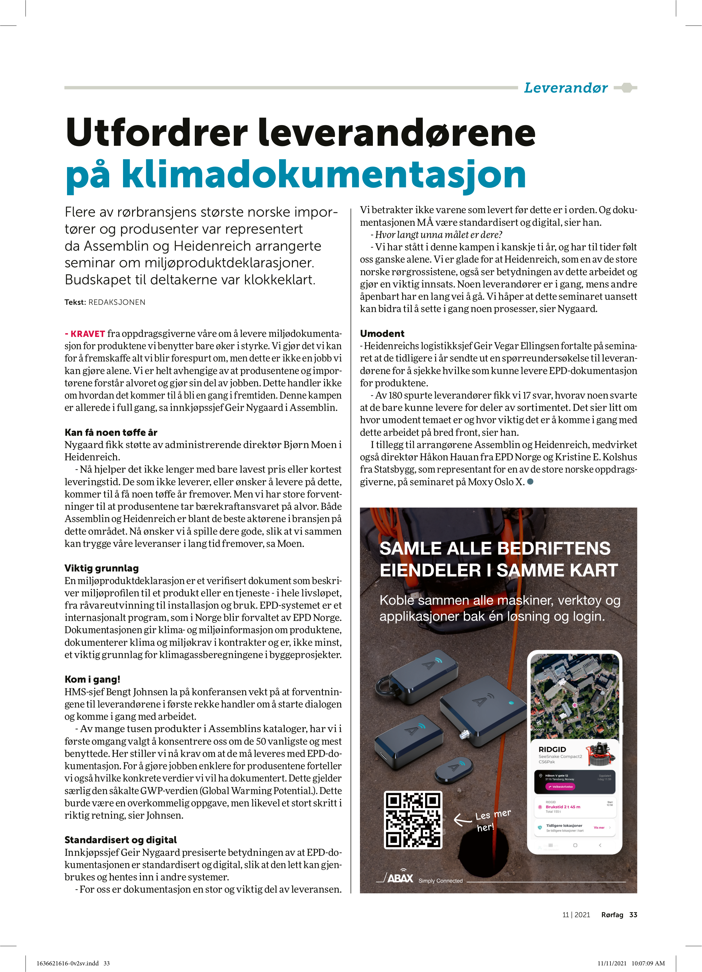 på klimadokumentasjon Flere av rørbransjens største norske importører og produsenter var representert da Assemblin og Heidenreich arrangerte seminar om miljøproduktdeklarasjoner. Budskapet til deltakerne var klokkeklart.