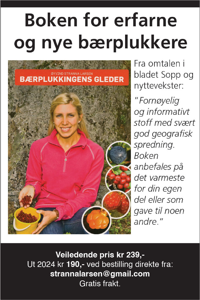 DETTE NUMMERET skal konsentrere seg spesielt mye om det sistnevnte: spiselighet og giftighet! Vi syns det måtte bli et helt eget tema for en utgave, for vi tror at det er mange som kan kjenne seg forvirra i det havet av informasjon som er der ute. Særlig nå som kunstig intelligens sniker seg inn overalt. Vi trenger virkelig folk som har kunnskapen, og som orker å oppdatere seg, formidle, forske, ta oss med ut på kurs og turer for å vise, snakke om og oppdatere oss på det vi trenger å vite! Noen av dem har bidratt i dette nummeret med sin uvurderlige kunnskap, enten via bøker de har lest og vil tipse deg om, via kunnskap de sitter på selv, eller egne erfaringer. Vi håper at det kan gi deg inspirasjon til å gå ut og innhente mer informasjon selv, bli med oss på turer eller kurs, eller bare på et møte i foreninga di. Kanskje du til og med selv får lyst til å bli biolog eller lege, eller spre den oppdaterte kunnskapen du har fått? Da håper vi du vil dele den med oss. God, trygg sankesesong og god lesing ønskes dere alle!