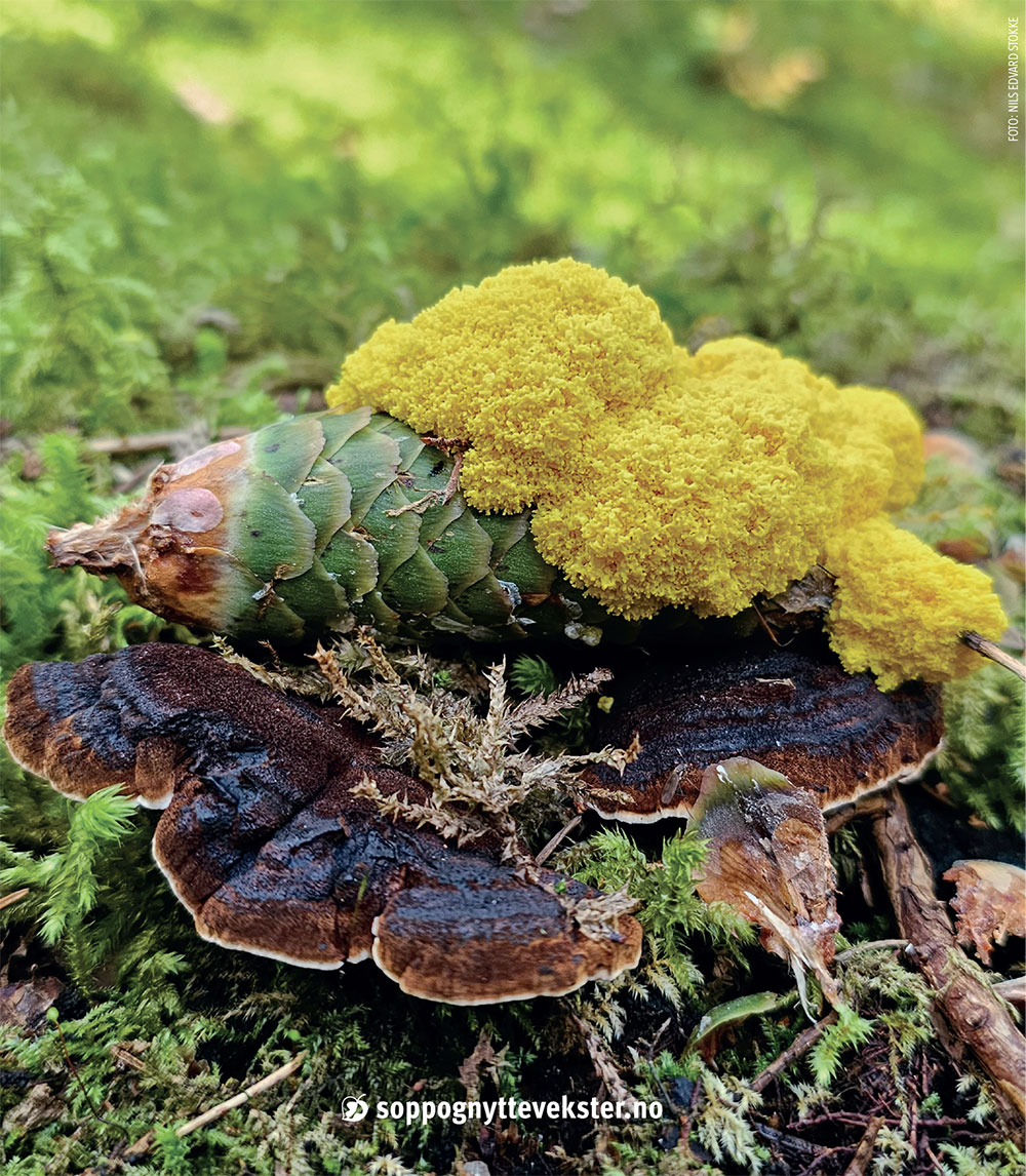 OG DET ER DET jeg har gjort i sommer. Løpt, gått, erfart, sett, sanka, smakt, kartlagt litt og tenkt. Jobba. Vært ensom. Og slappa litt av også, det trengte jeg! Alt har stort sett foregått i nærnaturen. Nærnaturen har gitt meg ro og tilhørighet, og dessuten levert mengder med slimsopp (eller slimamøber om du vil) som jeg blir glad av å se gjennom lupa! Jeg har fått det jeg trengte mest – natur, trening og en slags oppmuntring til å pleie nysgjerrigheten min. Takk til nærnaturen. Jeg har konkludert med at man må øve på å se det som er rett foran en, vie noen tanker til å sette pris på nettopp det som er her og nå, og repetere disse for en selv, for en dag er det kanskje borte. Kanskje det inspirerer til å ta bedre vare på det som er.