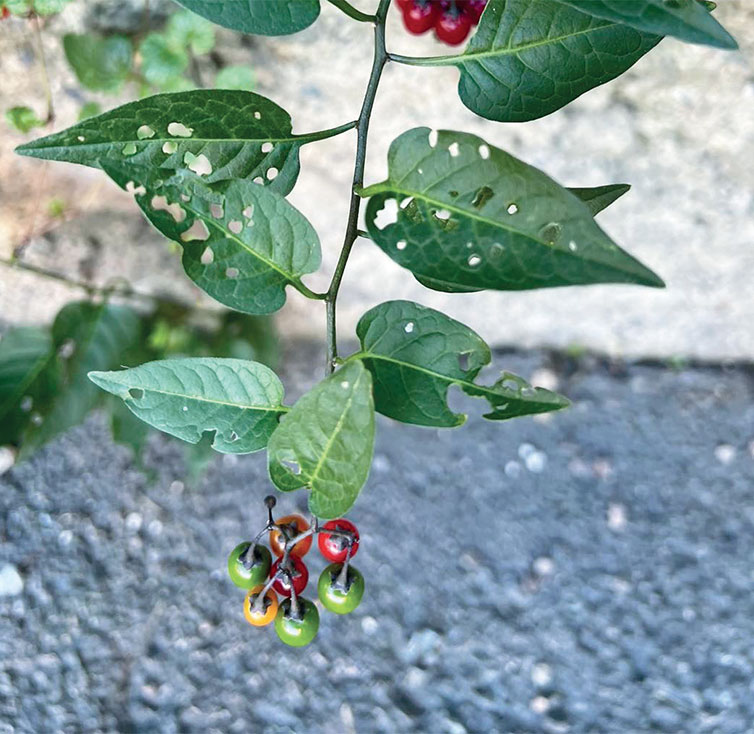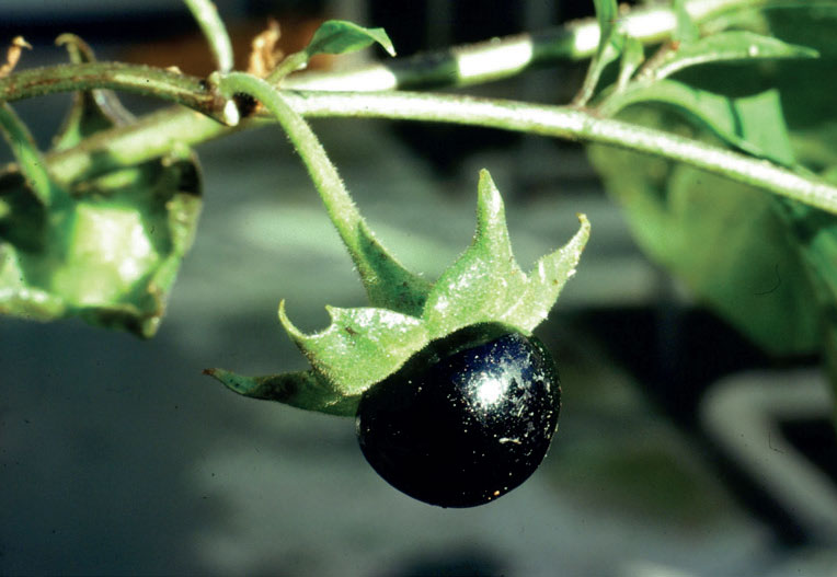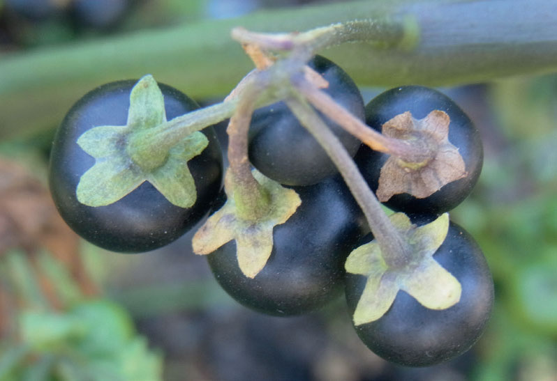 BELLADONNAURT Atropa belladonna, fotografert i Botaniska Trädgården i Lund. Belladonnaurt inneholder atropin, som kan reversere virkningene av muskarin. FOTO: HENRIK ANDREAS TORP.