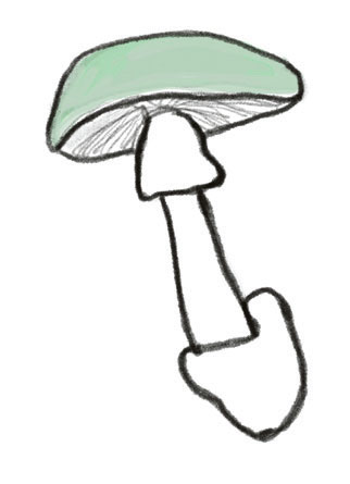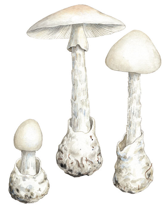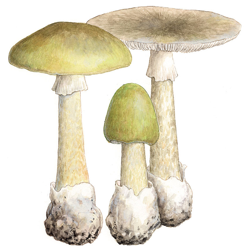 GRØNN FLUESOPP Amanita phalloides. ILLUSTRASJON:HERMOD KARLSEN