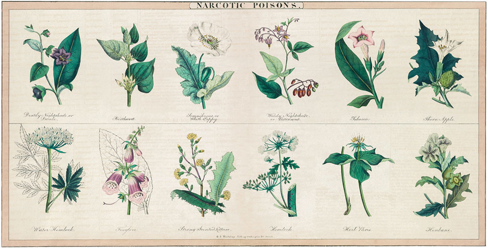EN 67-ÅRIG PENSJONERT LÆRER hadde sanket en stor mengde av den spiselige og gode soppen vårfagerhatt Calocybe gambosa og tilberedt et måltid med disse. Omtrent ti minutter etter at soppen var fortært ble hun uvel og svimmel, begynte å svette og opplevde synsforstyrrelser. Hun kontaktet legevakt. Etter en halvtimes tid ble hun undersøkt av en lege, og hadde da kastet opp flere ganger. Ved undersøkelsen fant legen blant annet langsom hjertefrekvens, små pupiller og økt spyttproduksjon. Etter å ha kontaktet giftinformasjonstjenesten fattet man mistanke om at kvinnen hadde forvekslet vårtrevlesopp Inosperma erubescens og vårfagerhatt. Vårtrevlesopp inneholder stoffet muskarin, som aktiverer en del av nervesystemet som kalles det parasympatiske nervesystemet. Symptomene hun hadde var helt karakteristiske for en muskarinforgiftning. Vel fremme på sykehuset fikk kvinnen en dose atropin, og symptomene gikk tydelig tilbake innen noen minutter. Det skyldes at atropin har en hemmende virkning på det parasympatiske nervesystemet, altså motsatt virkning av muskarin. Det kan derfor brukes som antidot ved muskarinforgiftning. Kvinnen kunne utskrives fra sykehuset etter tolv timers observasjon. Atropin har sin opprinnelse i belladonnaurt Atropa belladonna. Navnet belladonnaurt kommer av at kvinner i Venezia i renessansen dryppet øynene med saft fra belladonnaurt for å få store pupiller. Dette ble ansett som vakkert, og vakker kvinne er jo «bella donna» på italiensk. Som legemiddel er atropin i daglig bruk ved norske sykehus i forbindelse med narkose, der det blant annet brukes til å motvirke langsom hjertefrekvens.