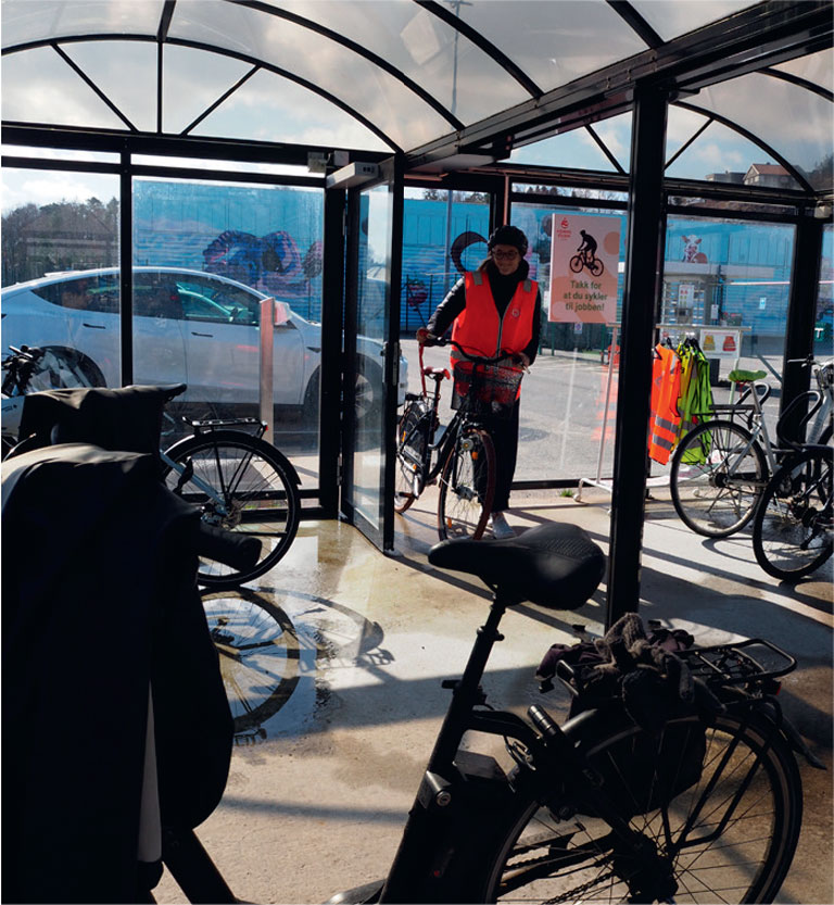 Sykkelskur, sykkelhotell, sykkelstativer, servicestasjon for